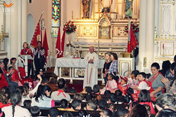 Após o desfile, as crianças seguiram para a Capela da IDES onde participaram de um momento de espiritualidade e bênção.
